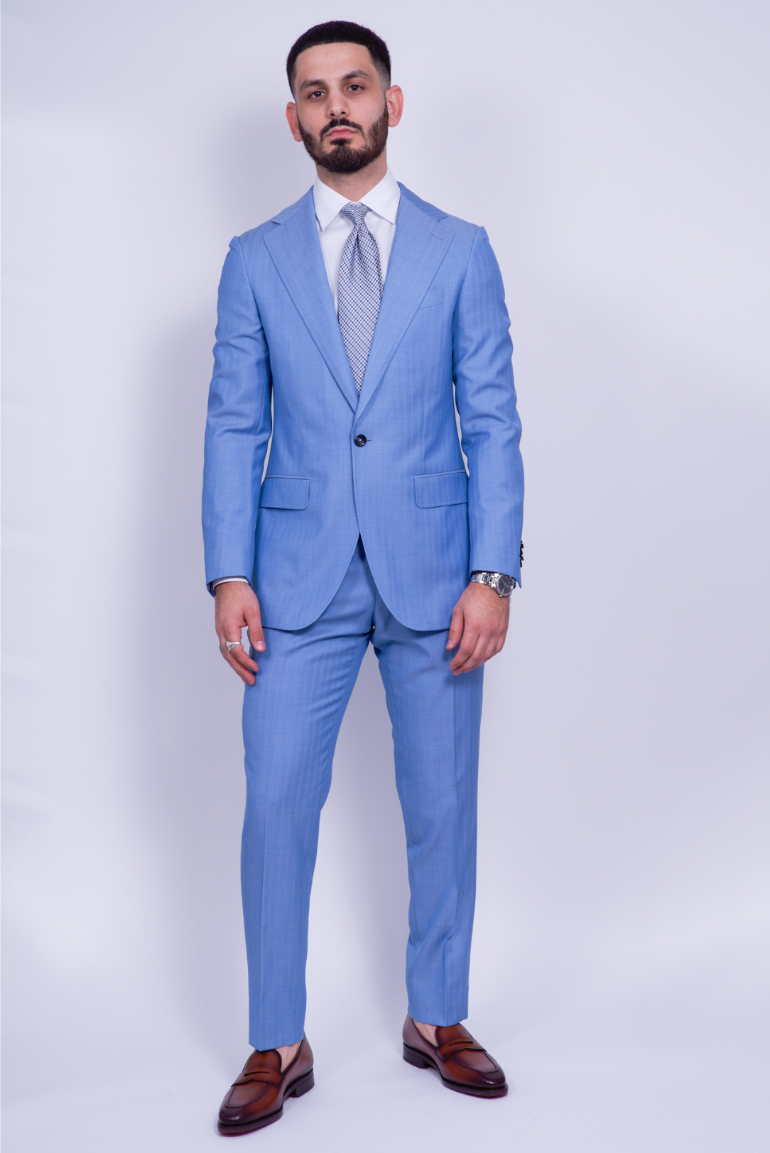 Choose your size and add to cart or request an appointment to get measured and enjoy the bespoke process. ( Upon delivery, we will work with you and a tailor near you for the final perfecting touches. Our website prices cover all the final touches to make your garment outstanding )